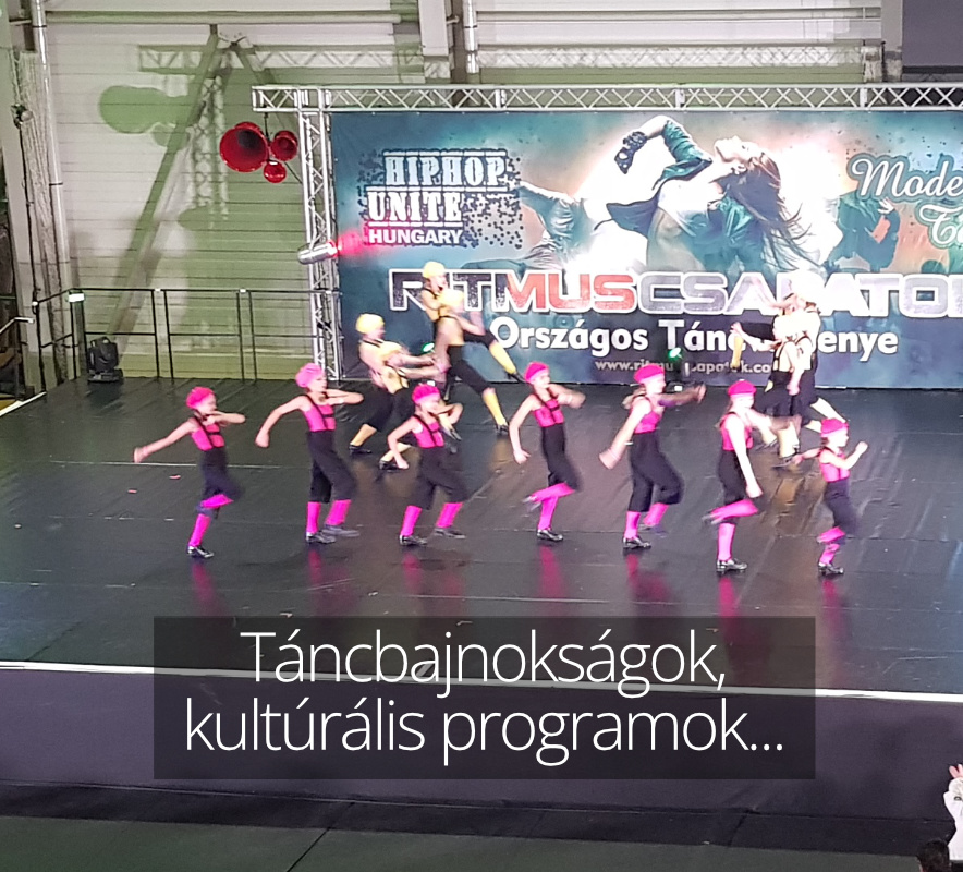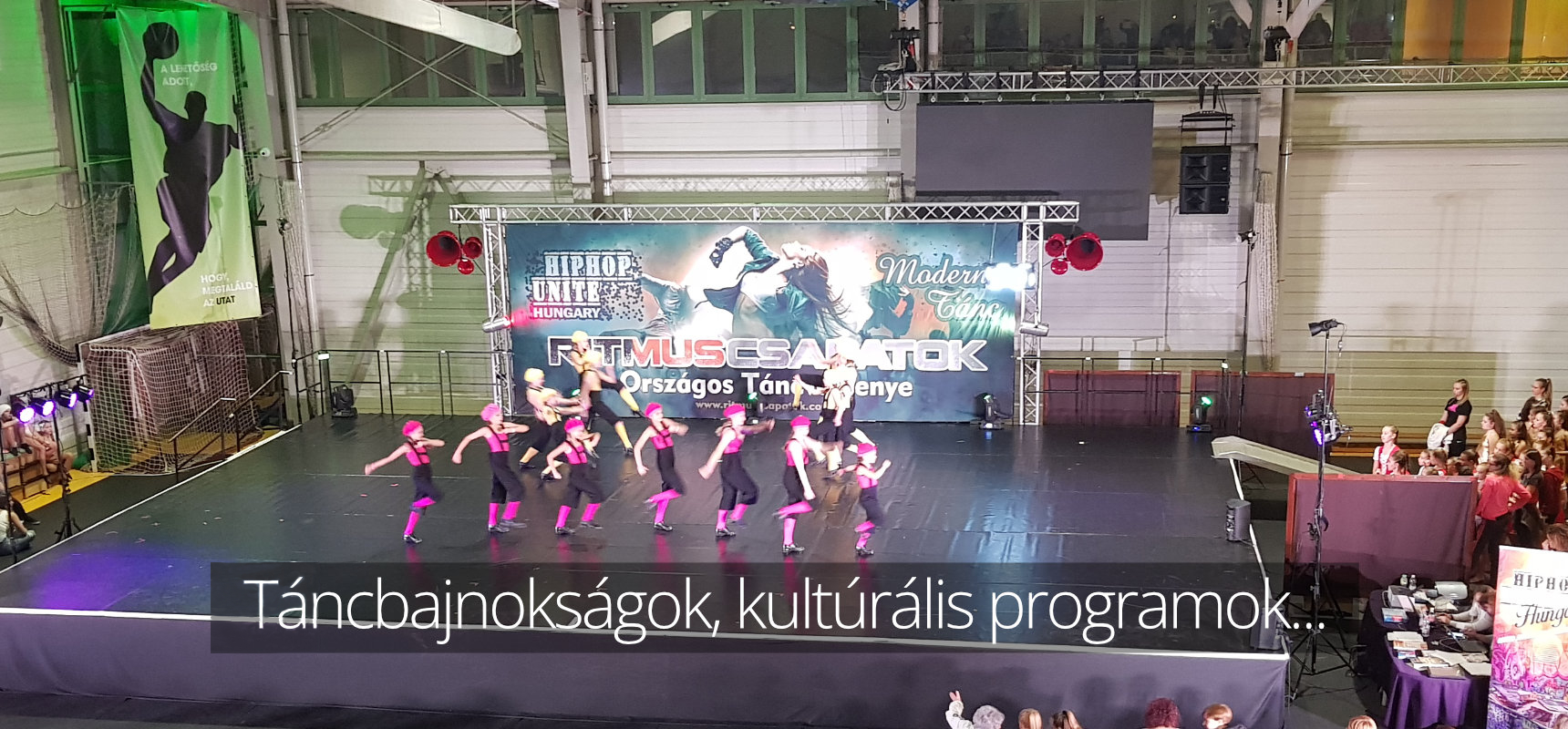 • Minden évben 20 kétnapos modern táncverseny, több önkormányzati rendezvény, koncert, gálaműsor, kultúrális program, kerületi óvodai és iskolás versenyek továbbá visszatérően sportnap, katasztrófavédelmi és más versenyek...